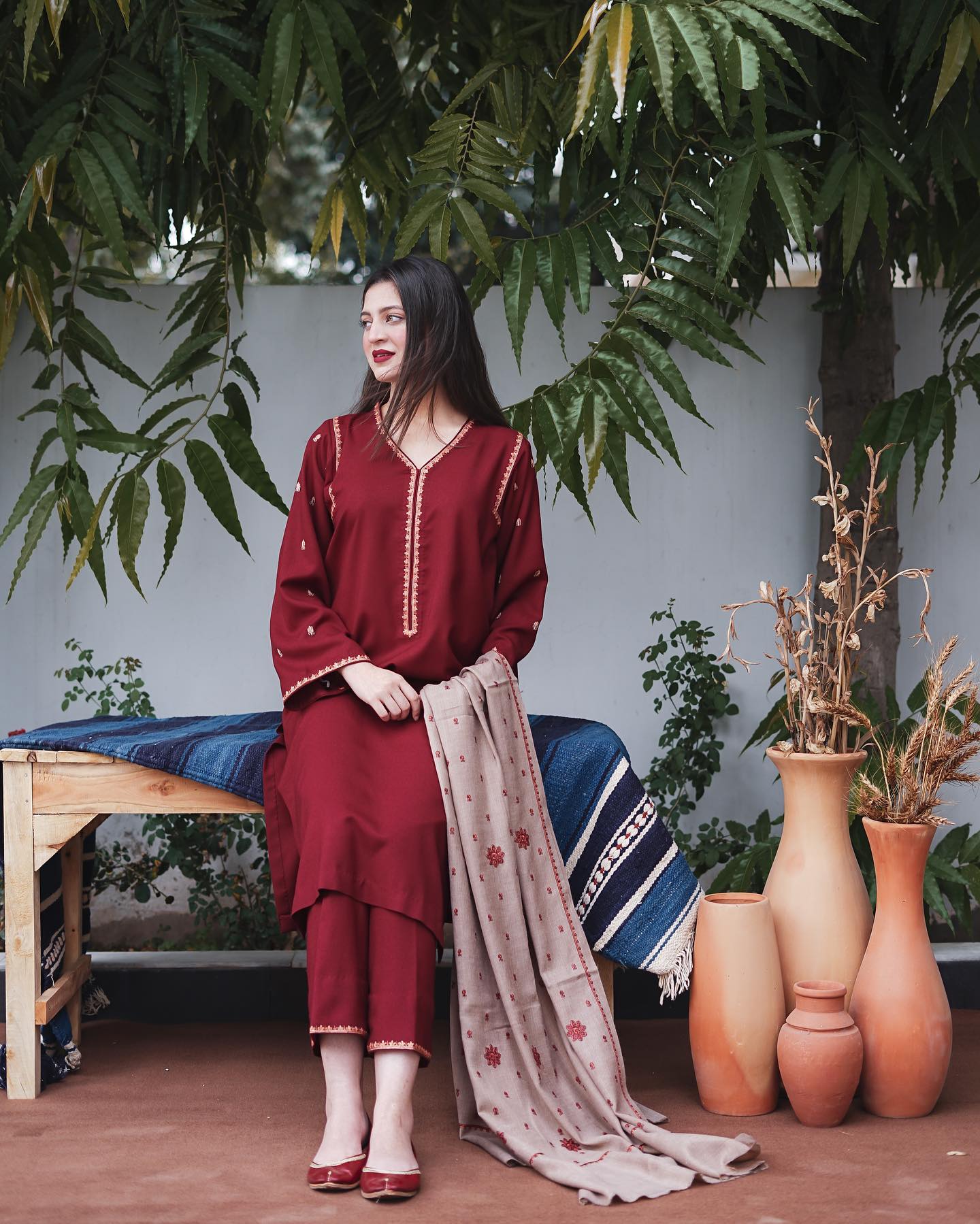 3 Piece Embroidered dhanak Shirt with Embroidered dhanak shawl